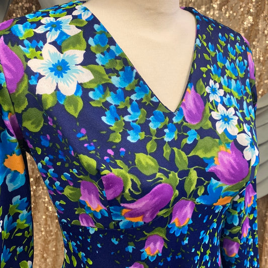 Robe de créatrice Gina Rinaldi Créations 1960/1970 fleurie