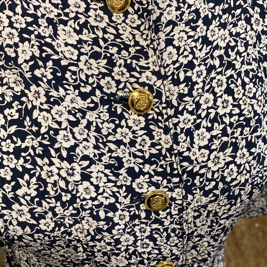 Robe florale ceinturée Thérèse Baumaire Paris 1990