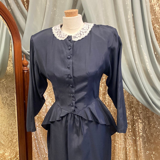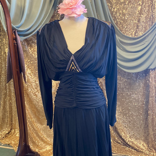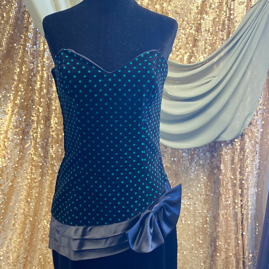Ensemble cocktail robe bustier et veste assorties noire à pois verts Zakura